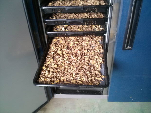 건조기로 울금을 건조하는 과정입니다.